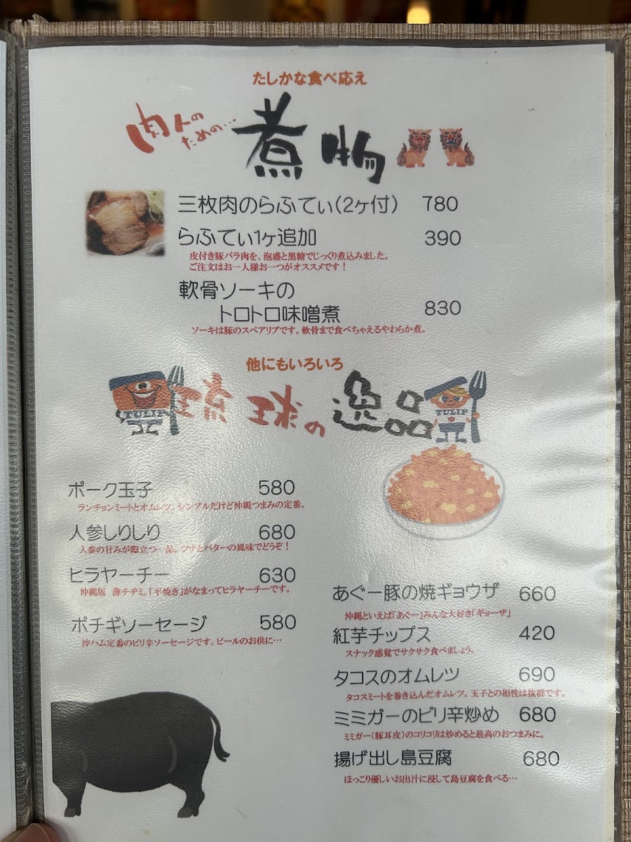 Among the individual dishes, the 海ぶどう三枚肉のらふてぃ (Sea Grapes with Pork Belly Rafuti) is a highlight, available for 2 pieces. For those craving more of the tender pork belly, they can add an extra piece of 三枚肉のらふてぃ (Pork Belly Rafuti) for 1 additional piece. The combination of flavors in these dishes brings a perfect balance of texture and taste, reflecting the heart of Okinawan cooking.