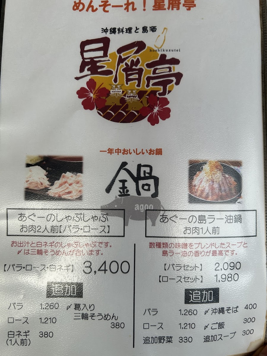 Overall, Hoshikuzutei Kashihara’s menu offers a rich exploration of Okinawan cuisine, with generous portions, delicious flavors, and reasonable prices, making it a must-try for anyone wanting to experience authentic island dishes. Whether you're enjoying a casual meal or a more elaborate feast, the restaurant ensures a satisfying dining experience with every dish.